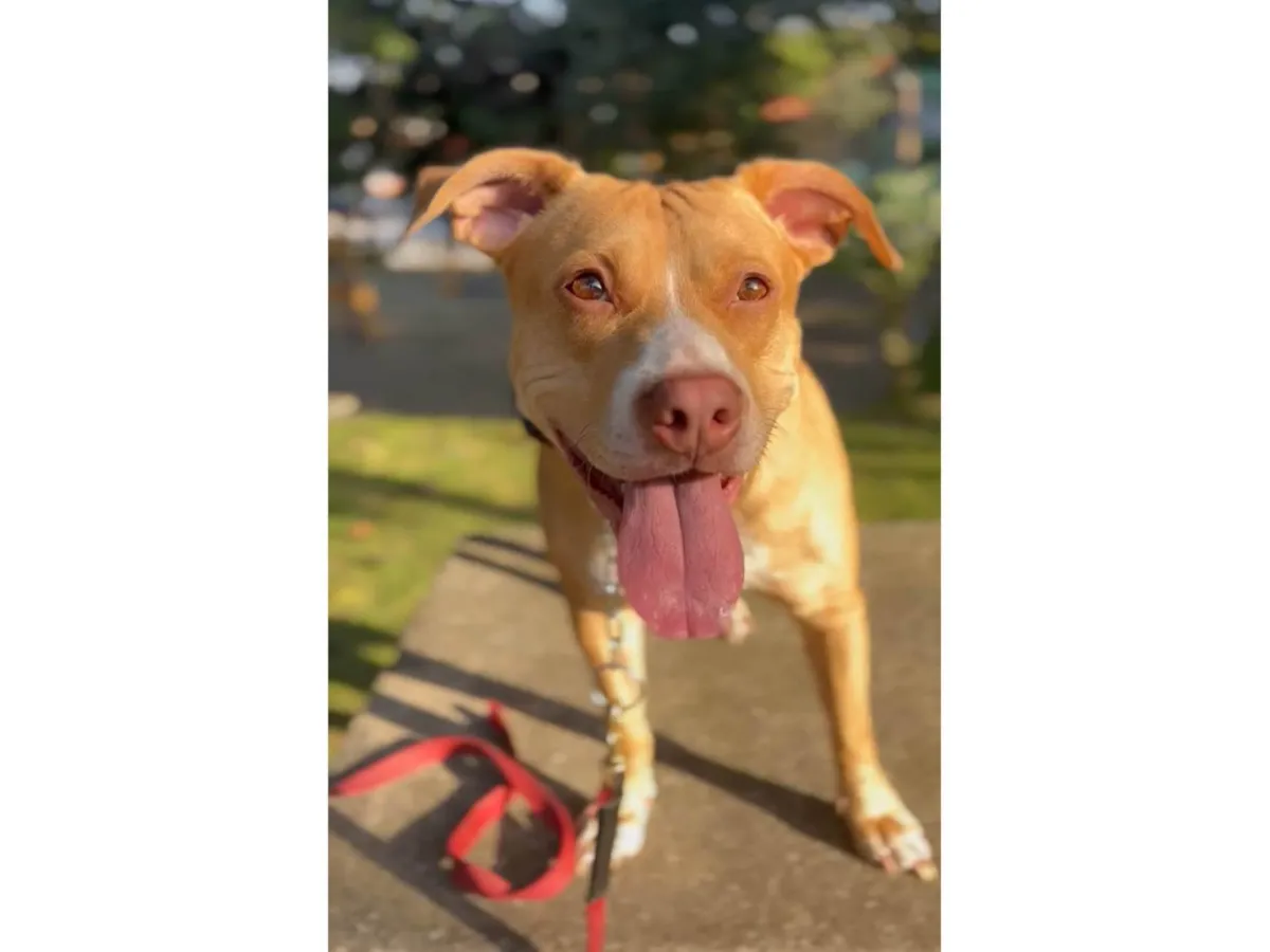 Essa é a Maria, uma cadelinha de aproximadamente 3 anos, já castrada, super esperta e cheia de vida! Ela passou por adestramento e aprendeu os comandos básicos. Passear com ela é uma delícia — anda bem na guia e adora um bom passeio!
