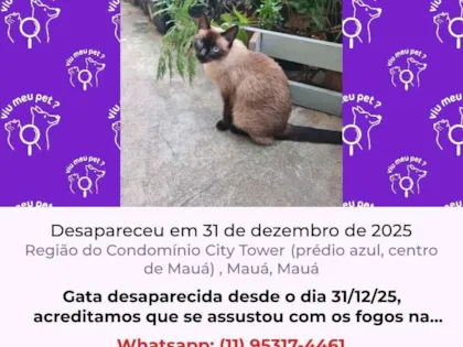 A Serena, está desaparecida desde o dia 31/12/25, acreditamos que se assustou devido ao barulho dos fogos da virada de ano novo, desde então estamos a sua procura, ela é uma gatinha muito boazinha, calma, sialata, olhos azuis, magra, castrada. Por favor, nos ajudem a encontrá-la, ela é extremamente importante para nossa família!