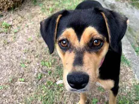 Pretinha e marrom. Tem menos de 1 ano de idade, muito brincalhona.