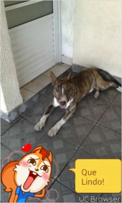 Estou doando meu bull terrier de 1 ano e 6 meses. Por motivos de espaço. Cachorro muito dócil e brincalhão. Adora passear. Infelizmente ñ estou tendo tempo para ele.
