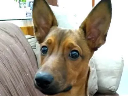 11 meses, porte médio, não é castrado, de cor mel com lugares pelagem preta, é um cão carinhoso, gosta de atenção e ama brincar.