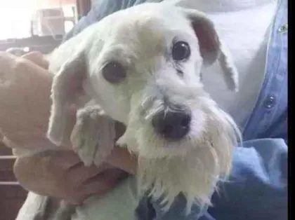 Ele parece ser mistura de poodle com maltês! Tem o pelo bem branquinho, sem manchas, e levemente enrolado.
