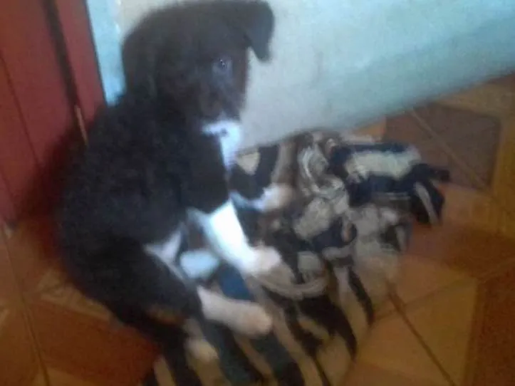 Fêmea com 2 meses de idade. Pelagem média, preta e branca. Dócil e brincalhona.