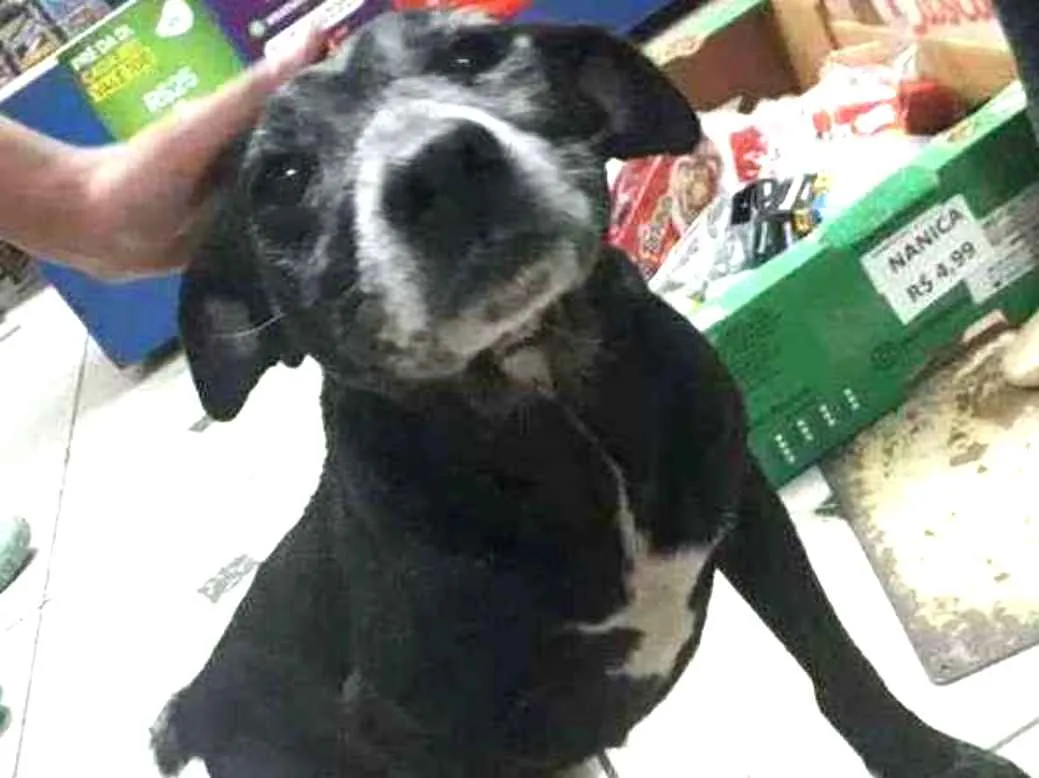 Hoje a tarde enquanto fazíamos a mudança da loja da minha mãe esse anjinho quase foi atropelado,estava com fome, sede, com feio e na chuva, ele é idoso, porém é o ser mais carinhoso que já conheci.
