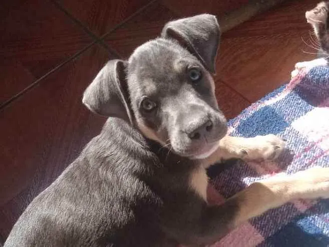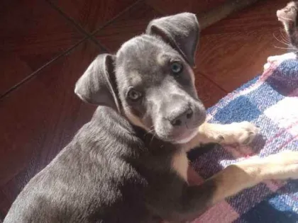 Estou doando essa linda cachorra fêmea, ela é mistura de vira lata com Pitbull, ela está com 3 meses nasceu em 31/03.