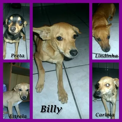 5 -billy , é o unico machinho de criaçao ele é um cachorro muito medroso e tranquilo adora reinar e suscegado cor do cachorro : marronzinho cor de pele.... .