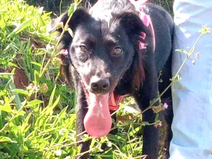 Cachorra peluda, porte médio, pelos pretos. Carinhosa, educada e brincalhona, ama passeios e sabe trazer a bolinha de volta. Perfeita companhia!