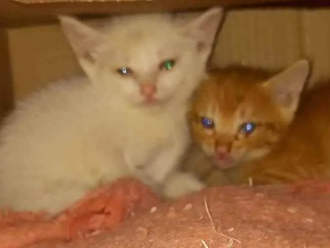 Adote um gato resgatado e mude sua história. Fêmea branca e macho amarelo buscam um lar amoroso. Ajude a dar uma nova chance para essas lindezas!