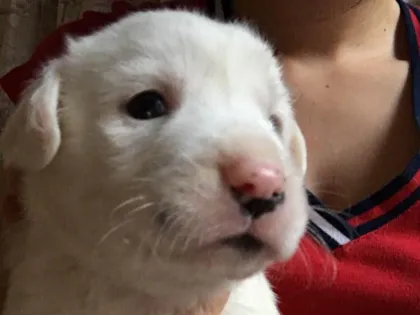 Procura-se um lar cheio de amor para o Floquinho! A mamãe desse branquinho já sofreu muito nas ruas e foi resgatada quase sem vida atropelada na rodovia, já prenha. Lutou muito, sobreviveu e essa heroína deu à luz 8 filhotinhos. Quase todos já encontraram uma família, mas o Floquinho ainda não! Quem quer um companheirinho fiel pra vida toda?