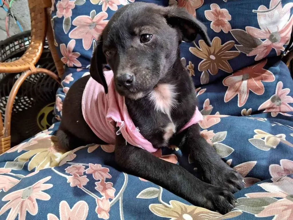 Esta é a Boneca, uma adorável cachorrinha SRD (vira-lata) de pelagem preta que está em busca de um lar cheio de amor! Com menos de 2 meses de idade e porte médio, ela traz toda a alegria e energia que só um filhote pode oferecer.
