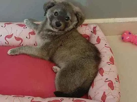 Encontrei essa cachorra, estava muito frio e chovendo. Levei ela para casa dei banho e comida mas não posso ficar com ela, pq moro de aluguel em apartamento e não é permitido animais. Levei ela no veterinário e ela tomou uma vacina. Preciso encontrar um lar para ela, ela é amorosa e gosta muito de brincar. Tem que ter paciência porque é um filhote, ela já dorme a noite toda e está aprendendo a fazer xixi e cocô na fraldinha, só come ração.