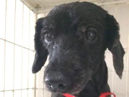 Foi abandonado no quintal de uma casa, com os pelos gigantes, completamente embolados. Foi tosado e ficou essa lindeza.