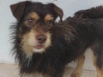 Por favor você pode me ajudar a divulgar a foto desse cachorrinho? Eu não sei mais para onde correr, ele apareceu aqui na minha rua e está aqui tomando chuva e