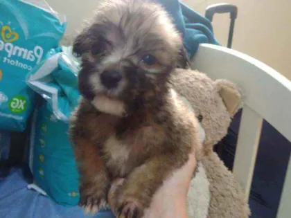 Lindo cãozinho PROVÁVEL porte pequeno para médio, provável mestiço de shitzu ou Lhasa. ( NÃO TENHO COMO GARANTIR PORTE, POIS FOI ENCONTRADO ABANDONADO NA RUA COM SEUS IRMÃOS E SEM OS PAIS)