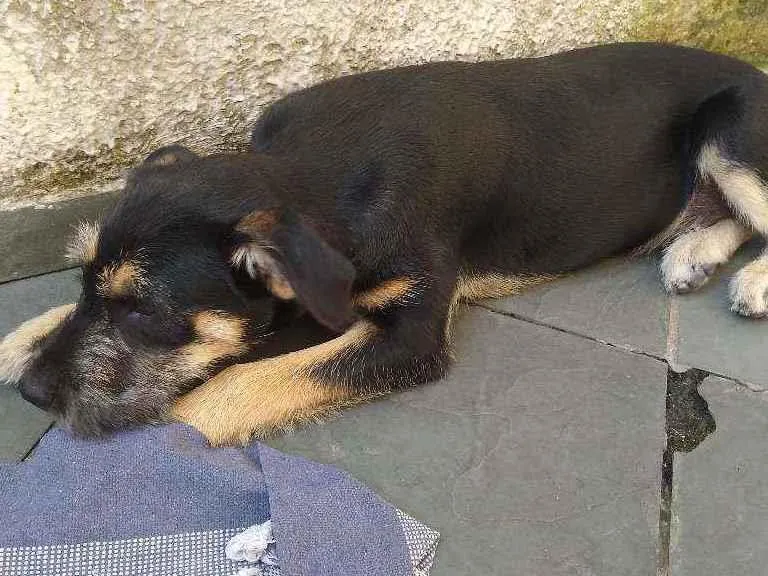 Adote o adorável Pingo, um vira-lata macho de 2 a 6 meses, vacinado e bem cuidado. Ele precisa de um novo lar em Santo André/SP. Dê uma chance ao amor!