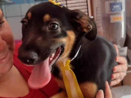 Cachorro vacinado, saudável, pesa 19 kg, tem 4 a 5 meses. Amigável com crianças, adultos, gatos e outros animais. Come qualquer ração.