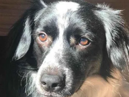 Border Collie mistura, inteligente e carinhoso, precisa de um novo lar. Não se adaptou ao bebê e vive em apartamento pequeno. Gastos altos.