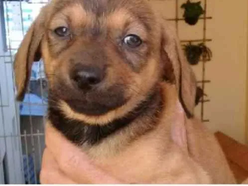 Tem 45 dias. Porte de pequeno à médio. Se dá super bem com outros animais.