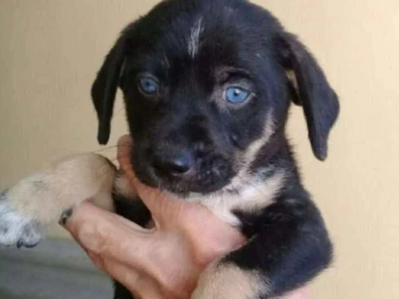 Tem 45 dias. Porte de pequeno à médio. Se dá super bem com outros animais.