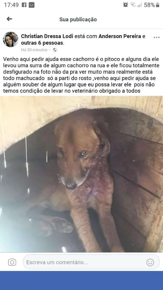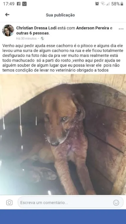 Socorro venho pedir ajuda o cachorro da minha mãe levou uma surra de outro cachorro e está todo machucado muito mesmo e não tenho condição de levar ao veterinário me ajudem por favor