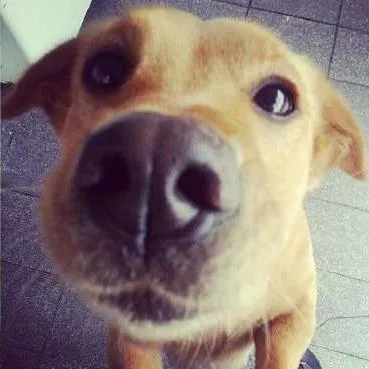 Atende pelo nome de Reiki, porte médio, baixinha gordinha, tem uma patinha torta como mostra na foto, a língua com manchas roxa. Mestiça de Labrador com Chow-Chow.