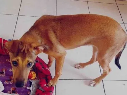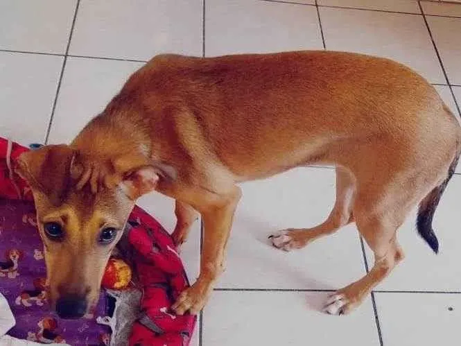 Conheça a Paçoca, uma linda vira-lata fêmea de 6 meses, castrada e pronta para ser adotada. Venha mudar a vida dela em Santos/SP!