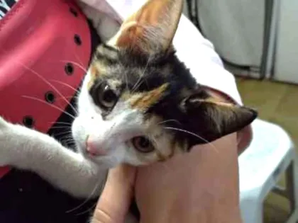 Esta pequena gatinha foi abandonada na porta do meu serviço, estou com ela há 3 semanas e até o momento não encontrei nenhuma família que tivesse interesse em ficar. Ela está sendo muito bem cuidada com muito amor, porém infelizmente minha família não poderá ficar com ela e precisamos encontrar um novo lar.