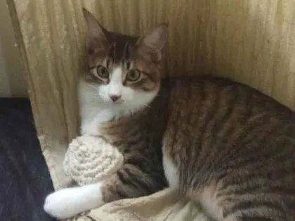 Encontre Túlio, um grande gato SRD macho de 1 ano, com pelagem longa. Ele é tímido e precisa de um lar amoroso. Ajude-nos a trazê-lo de volta!