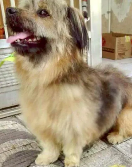 É um vira-lata, de pelo longo, misto com Lhasa Apso. Extremamente carinhoso, fofo demais! É com dor no coração que tomamos essa decisão.