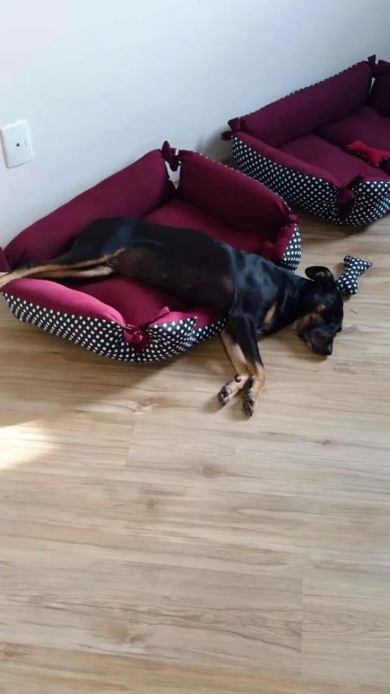 A Harley é muito dócil, carinhosa, gosta de colo e de abraço.