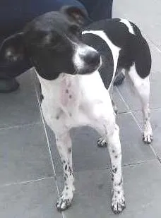 Pelagem curta branca e preta.