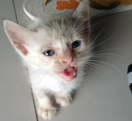 Estou doando uma gatinha linda, mais ou menos 1 mes branca de olhos azuis, ela ja vai com vacinas pagas.