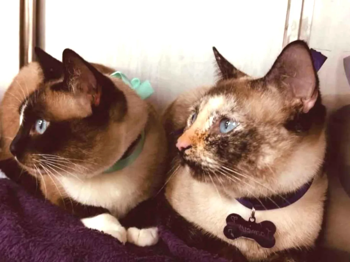 Curta branca cinza e siamês