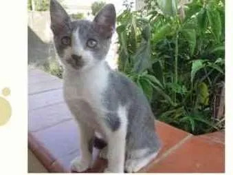 Gatinho branco com cinza, muito carinhoso e bonzinho, adora brincar e se for adotado com o irmãozinho seria super!