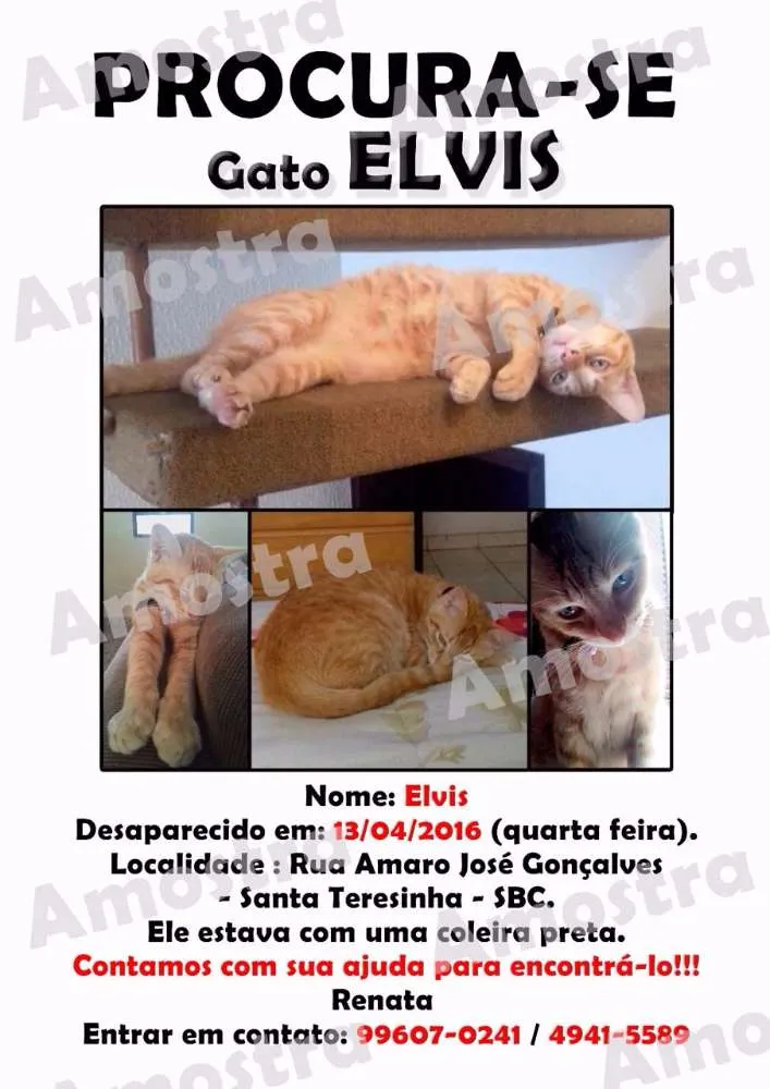 Ajude a encontrar Elvis, gato perdido em SBC, 1 ano, SRD