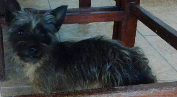Foi encontrada com um fio de luz amarrado no pescoço. É muito assustada, tem medo de tudo.