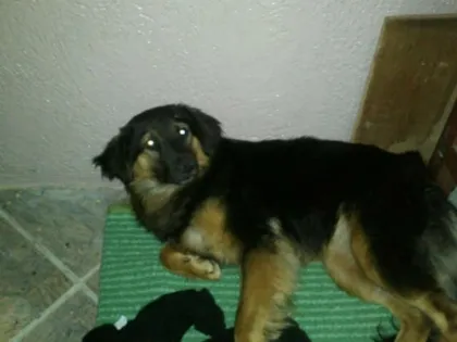 Aparenta ser uma mistura de pastor alemão e chow chow e já está castrada.