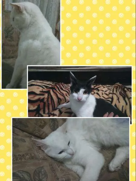 A outra gatinha porte pequeno branca com manchinhas pretas e olhos de cor amarelado claros,nome dela é Nininha, castrada também. Todos tem idade de 1ano e 7 meses