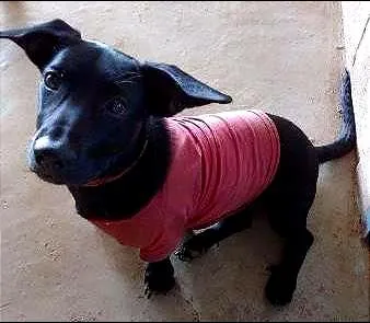 Ela é nenezona, dócil, precisa encontrar o dono ou um lar, quando encontrei já estava com coleira e camisetinha infantil feminina.