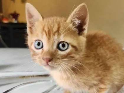 Gato macho amarelo rajado muito lindo tem olhos claros, esta com 2 meses recém desmamado, muito manso ideal para companhia, esta na fase de descobrir as coisas muito engraçado, esta a procura de um novo lar.