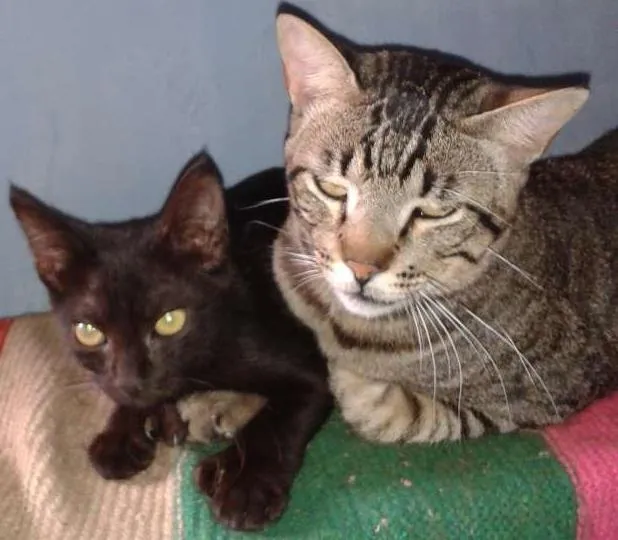 02 gatinhos:1 macho,já castrado,rajado,aproximadamente 1 ano,muito amoroso;1 fêmea, preta,castração agendada em clínica veterinária sem custo para o adotante, aproximadamente 02 meses.