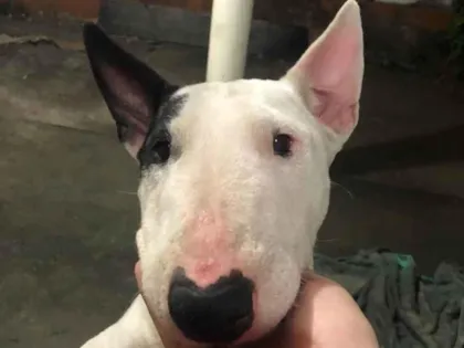 Adote a Izzy, uma Bull Terrier de 3 anos, cheia de energia e amor! Ela adora passear e brincar. Procura um lar só para ela em São José dos Campos! ????