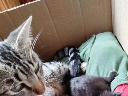 Ela é super tranquila com humanos e adora receber carinho. Seu jeito meigo conquista rapidamente! No entanto, a convivência com outros gatos não tem sido fácil, e por isso, estamos buscando um lar especial para ela e seus adoráveis filhotes. 🏡💖