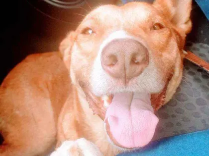 Baruke, cão de 1 ano, resgatado com fratura e contusão, é ativo, amoroso e sociável. Procura adoção responsável como companheiro, não como cão de guarda.