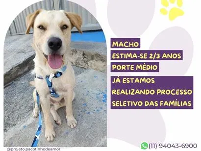 Cachorro SRD Belo, 2 anos, para adoção em São Paulo/SP