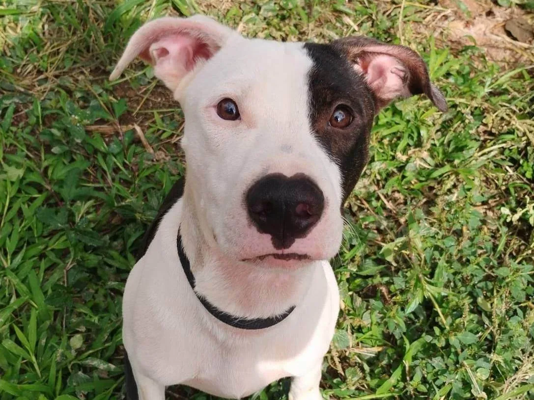Adote Billy, um SRD misturado com Pitbull, brincalhão e carinhoso. Procura um lar amoroso e espaço para sua energia. Seja o novo tutor desse companheiro fiel!