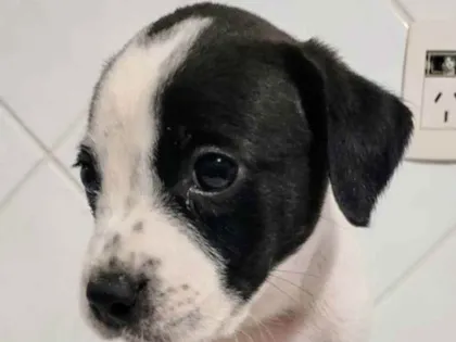 Conheça Bola Oito, um SRD macho de 2 a 6 meses, carinhoso e brincalhão, disponível para adoção em São Paulo. Ele merece um novo lar!