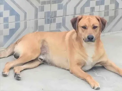 Adote o Bóris, um companheiro dócil e brincalhão de 3 anos! SRD machinho castrado, vacinado e sociável. Faça a diferença na vida dele e leve alegria para sua casa!