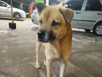 Foi abandonado em um posto de gasolina na estrada de Itapecerica, já está ferido no pescoço foi atropelado também. Os cães da rua estão batendo nele.