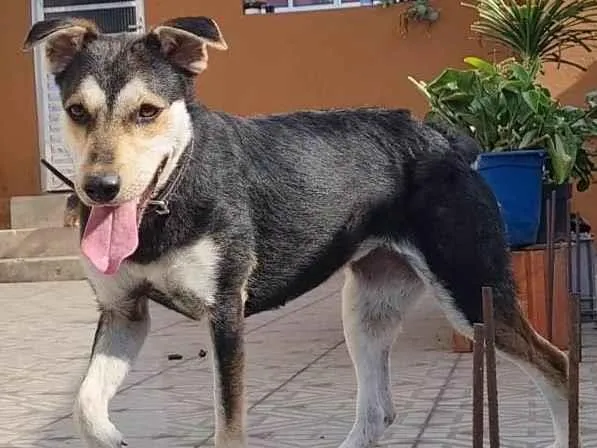 Cachorra fêmea preta com marrom e branco, resgatada do lixo com pata quebrada. Carinhosa, brincalhona e já recuperada. Procura um lar amoroso.